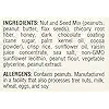 NUT AND SEED BLEND (PEANUTS, FLAXSEEDS), CHICORY ROOT FIBER, SUGAR, HONEY, RICE FLOUR, BROWN RICE FLOUR, PALM KERNEL OIL, COCOA POWDER, PEANUT FLOUR, UNSWEETENED CHOCOLATE, SUNFLOWER OIL, SALT, GLYCERIN, RAISIN JUICE CONCENTRATE, PEANUT BUTTER, SUNFLOWER LECITHIN (AN EMULSIFIER), PEANUT OIL, COCOA BUTTER, SOY LECITHIN (AN EMULSIFIER), VANILLA EXTRACT.