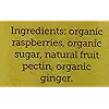 ORGANIC RASPBERRIES, ORGANIC SUGAR, NATURAL FRUIT PECTIN, ORGANIC GINGER.