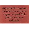 ORGANIC RASPBERRIES, ORGANIC SUGAR, NATURAL FRUIT PECTIN, ORGANIC RED CHILE.