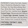 GLUTEN-FREE OATS, ORGANIC AGAVE, BLUEBERRIES (BLUEBERRIES, SUGAR, SUNFLOWER OIL), ORGANIC COCONUT SUGAR, MONOUNSATURATED SAFFLOWER OIL, ALMONDS, BROWN RICE FLOUR, WHITE RICE FLOUR, COCONUT, TAPIOCA STARCH, CHIA SEEDS, WHOLE EGGS, SWEET RICE FLOUR, GLUTEN-FREE FLAVORS, SEA SALT, XANTHAN GUM, BAKING SODA, NUTMEG, LEMON OIL.